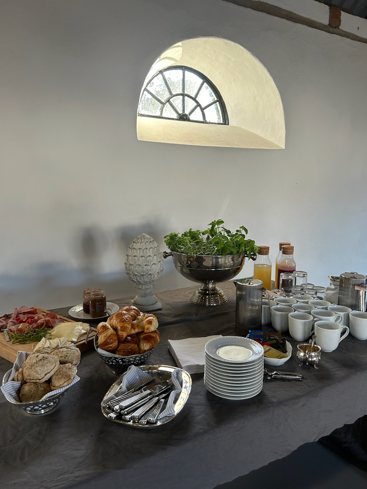 Serveres i Hovedbygningen. Ønskes kun kaffe/thé og croissant, serveres dette stående i Østlængen.